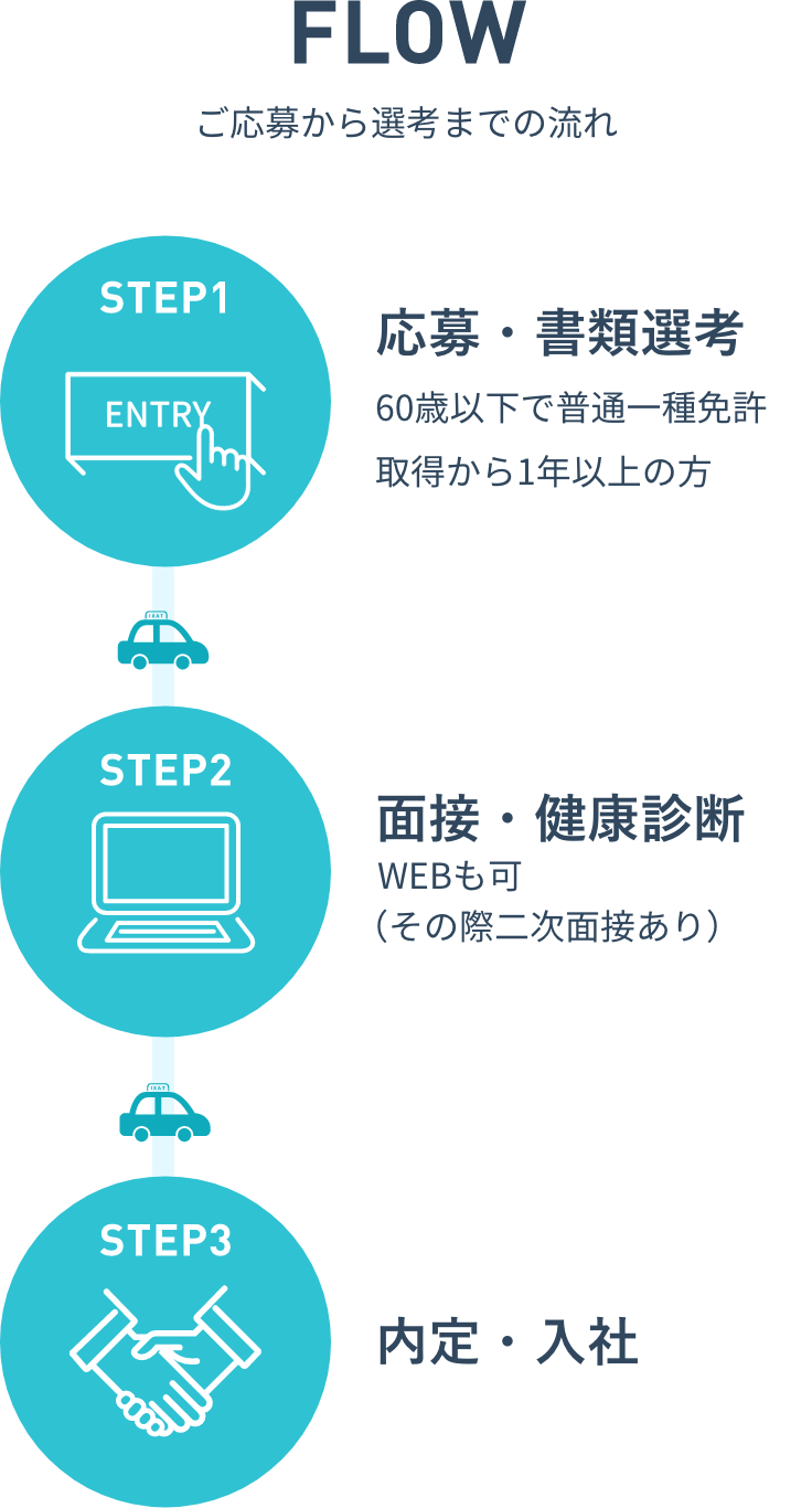 また、20代、30代からでも、タクシードライバーのみならず、運行管理者・グループ会社社長などのキャリアアップも実現可能です。