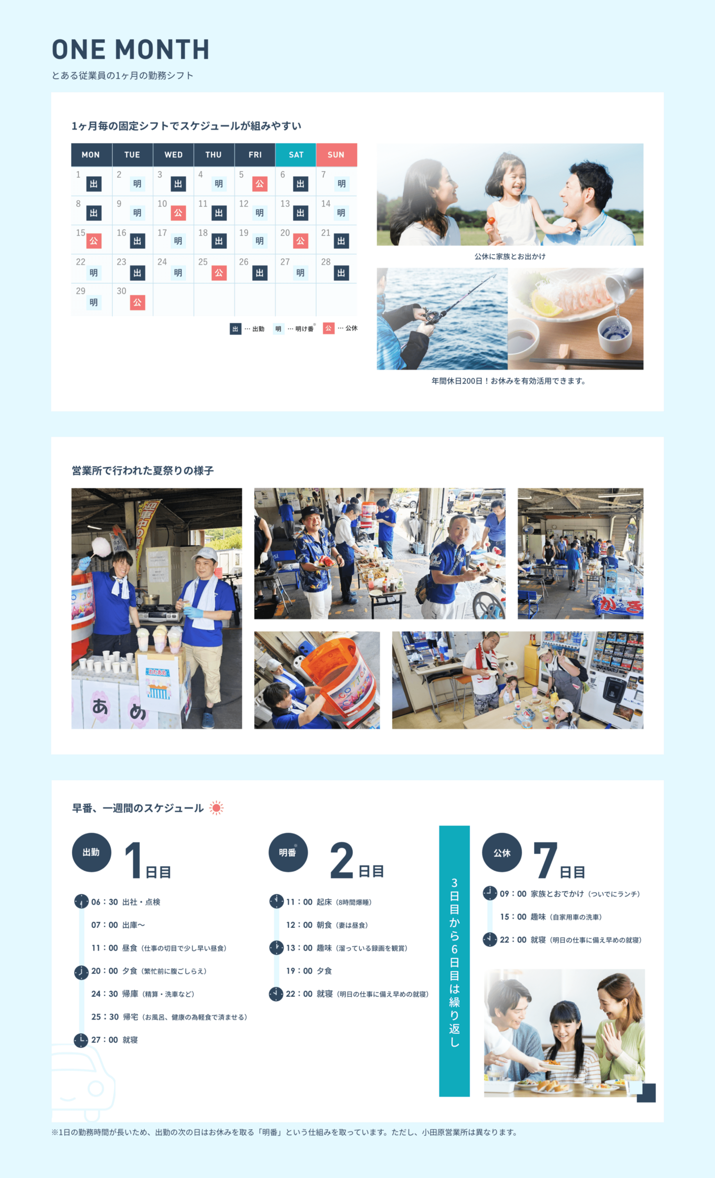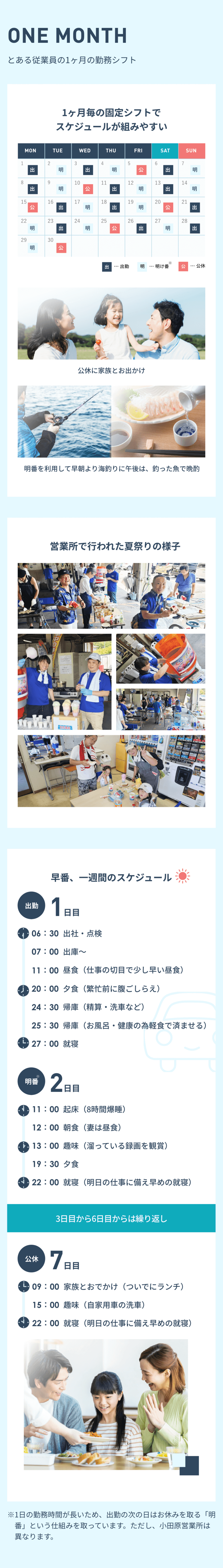 | 休日・休暇 | 月6~8日(シフト制。土日休みも可能です。)※隔日勤での明け番を含まず ・産休 ・育児休暇 ・介護休暇 |